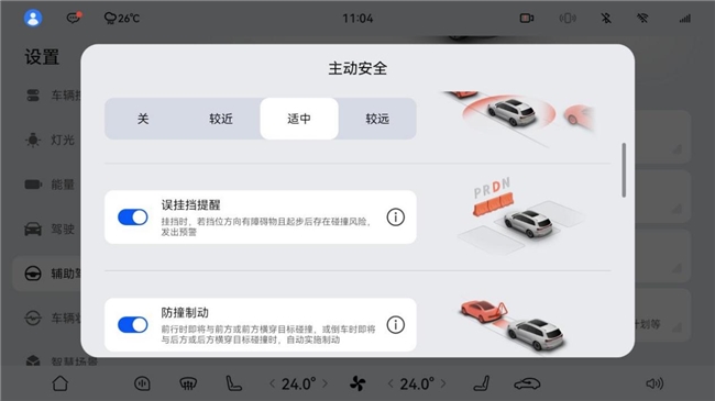 该车型还具备误挂挡告警提醒功能,在挂挡方向存在障碍物且起步后可能发生碰撞时,系统会主动发出警示,进一步强化起步阶段的安全防护。